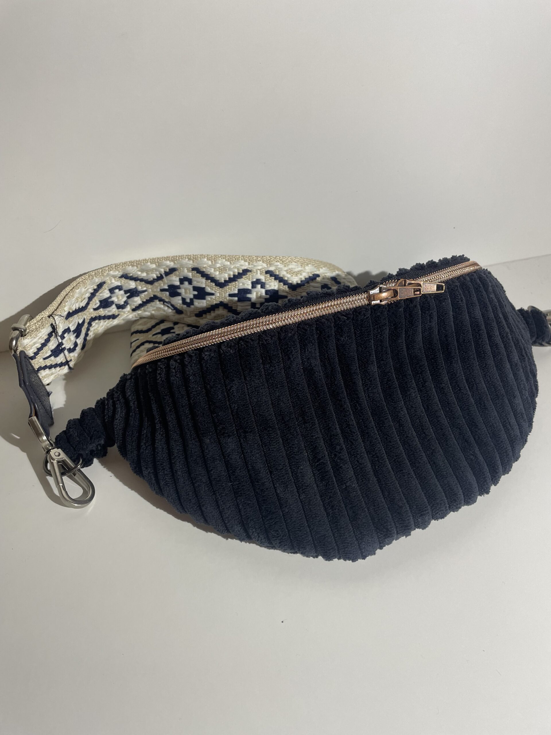 Handgemachte Bauchtasche aus Cord – Schwarz