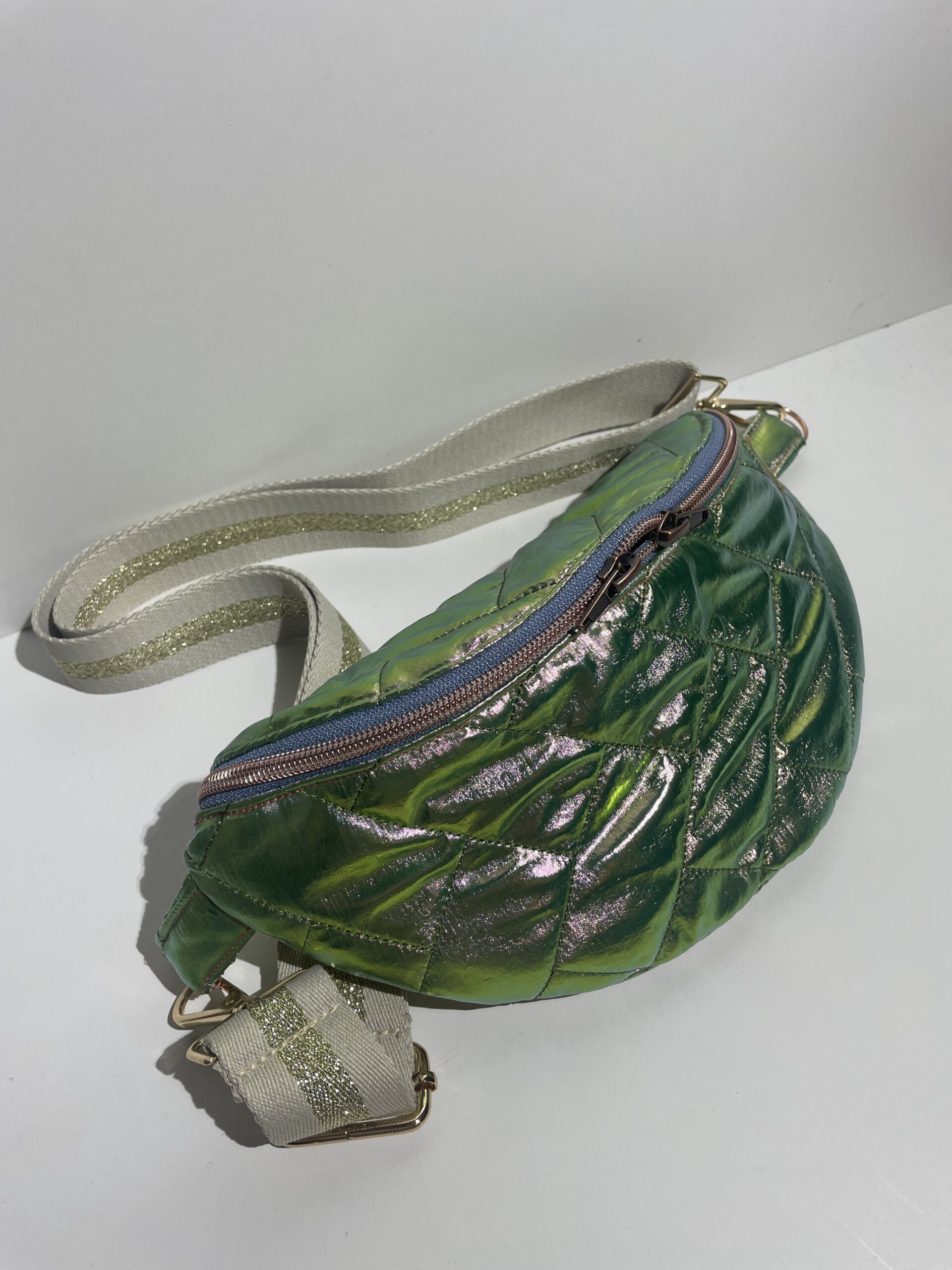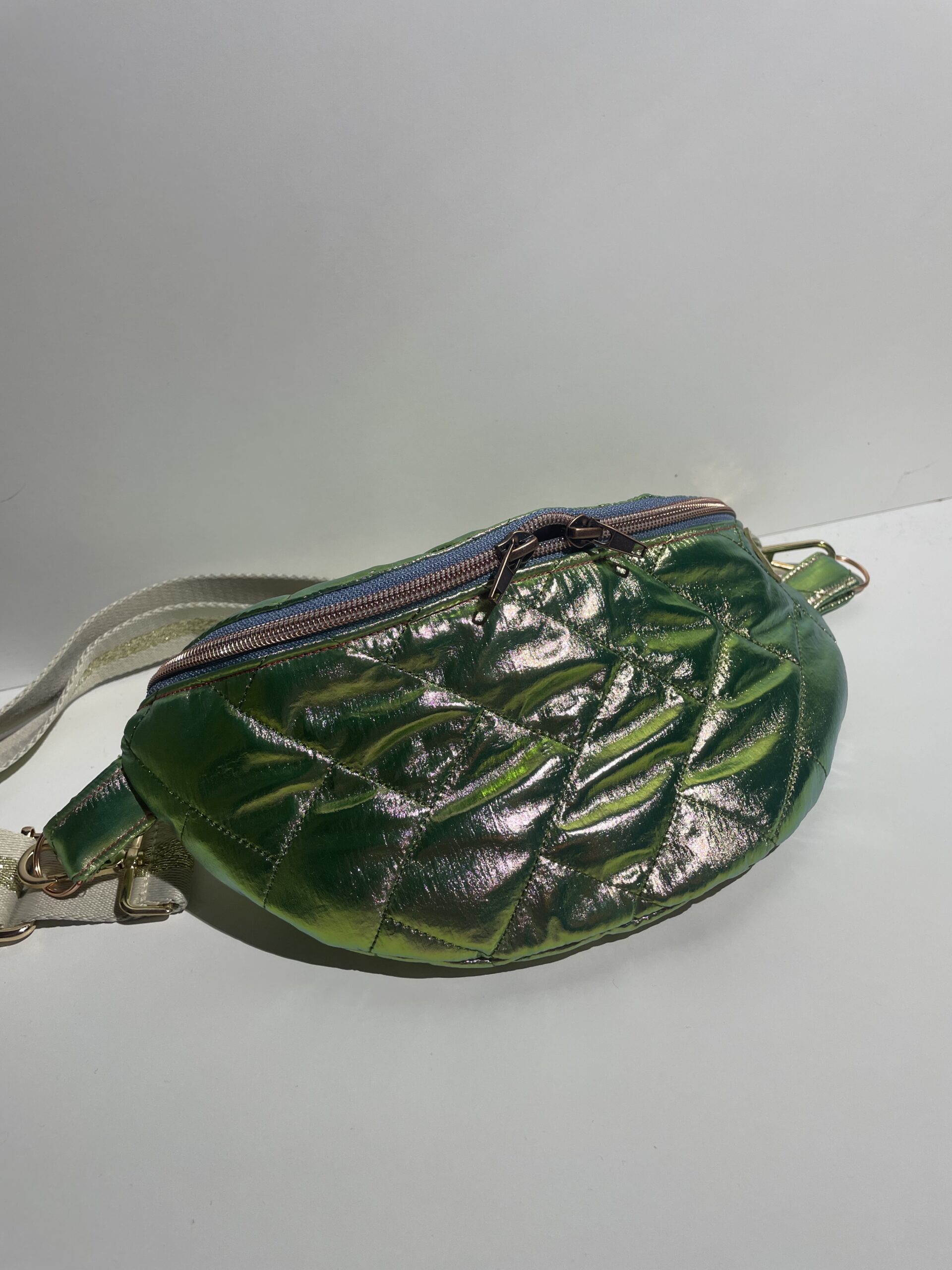 Gesteppte Gürteltasche / Crossbody Bag – Grün schimmernd